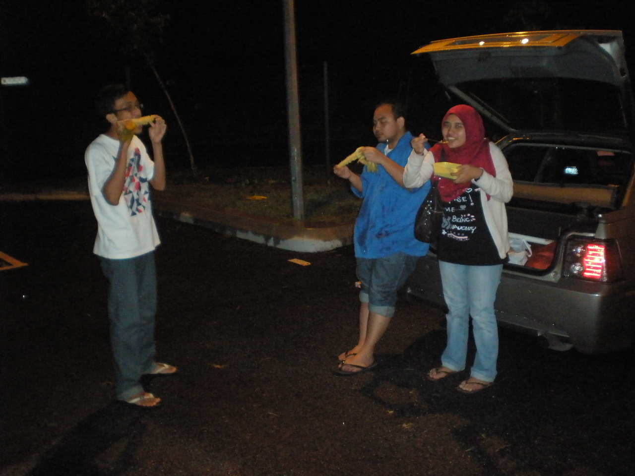 Lepas pulun cari parking motor, kitorang bertiga gigih redah orang ramai tu cari KakNiza dengan Adam. Sorang jumpa. yang sorang lagi pulak hilang entah mana. After few minutes, nampak dah Adam mai dengan KakFizah. Tak lama tu pick up KakMaz pulak yang parking kete jauh nun. Kakyin keje. So, kuranglah quota kitorang. its okay. Dengan adanya Adam Kepoh, cukup bagi perut kitorang senak gelak banyak sangat. Lecturer lah sangat orang tua ni! Perangai tak semenggah.